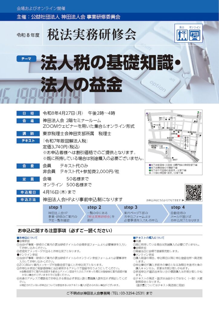 令和8年度 税法実務研修会(4月期)